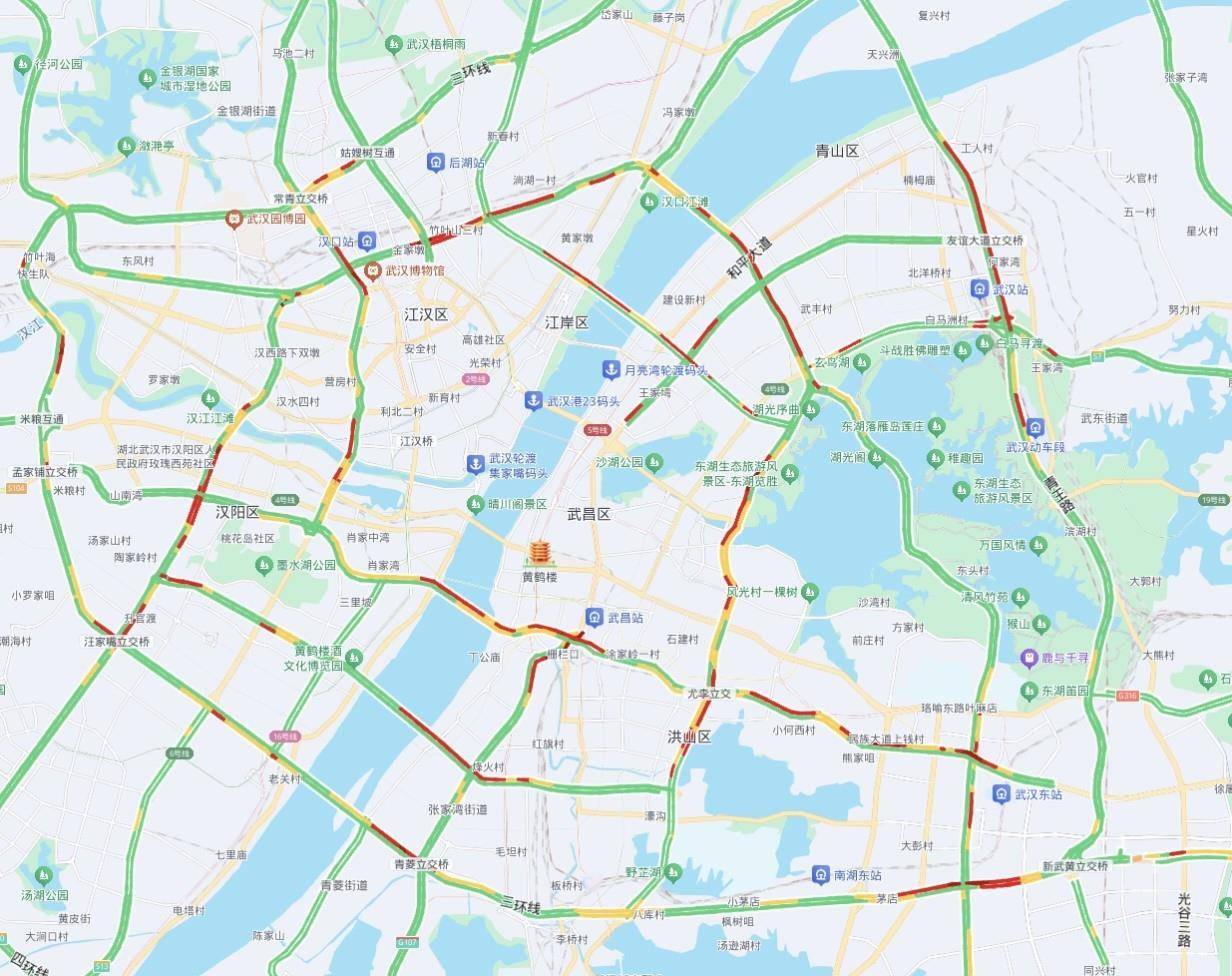 9月30日的15:00,从武汉第二环路到第三环路的交通流量继续上升,一些主要的路节点显示出明显的放缓。根据武汉交通管理部门的预测,汉朝的第一个高峰将于今天16:00至19:00举行,其中17:00-18:00是当天最繁忙的季节。