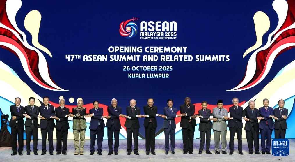 10月26日,在马来西亚首都吉隆坡,第47届东盟峰会开幕式及系列会议开幕式上,来宾合影。第47届东盟峰会及系列会议将于10月26日至28日举行。东盟领导人将重点讨论东盟共同体建设和对外关系等问题,讨论深化区域一体化、促进经济增长、加强东盟互联互通等问题。 26日,东帝汶在东盟各国领导人见证下正式成为东盟第11个成员国。新华社记者岑云鹏摄分页10月26日,在马来西亚首都吉隆坡,东帝汶总理夏纳纳在第47届东盟峰会及系列会议上发表讲话。新华社记者岑云鹏摄 分页10月26日,在马来西亚首都吉隆坡,东盟轮值主席国马来西亚总理安瓦尔发表讲话第47届东盟峰会开幕式及系列会议。新华社记者 岑云鹏 摄 这是东盟峰会标识 记者 邢广利 10月26日,记者在马来西亚首都吉隆坡东盟峰会新闻中心提问。新华社记者 邢广利 分页 10月26日,记者在马来西亚首都吉隆坡东盟峰会新闻中心工作。新华社记者 邢广利 分页 10月26日,在马来西亚首都吉隆坡,老挝总理宋赛、新加坡总理黄循财、泰国总理阿努廷、越南总理范明正、东帝汶总理夏纳纳、马来西亚总理安瓦尔、菲律宾总统马科斯、布鲁内·苏兰·哈桑纳尔、 柬埔寨首相洪马奈、印尼总统普拉博沃、缅甸代表(前排从左至右)签署《宣言》东帝汶加入东盟”。新华社记者 岑云鹏 摄